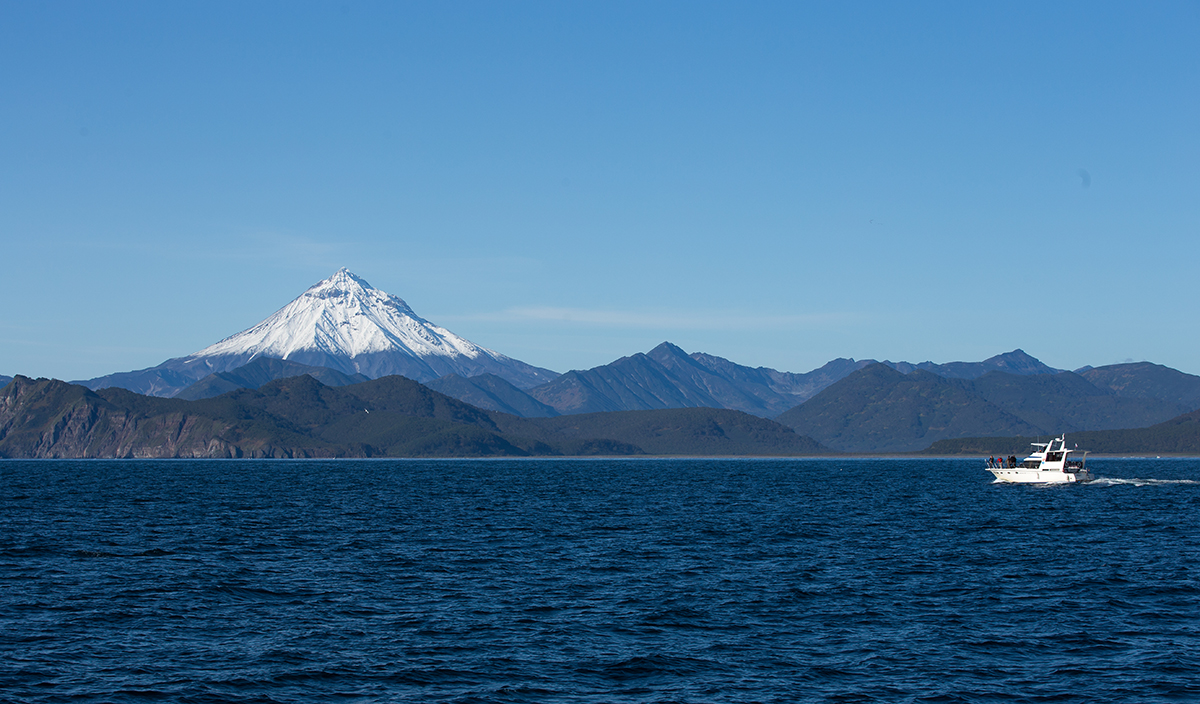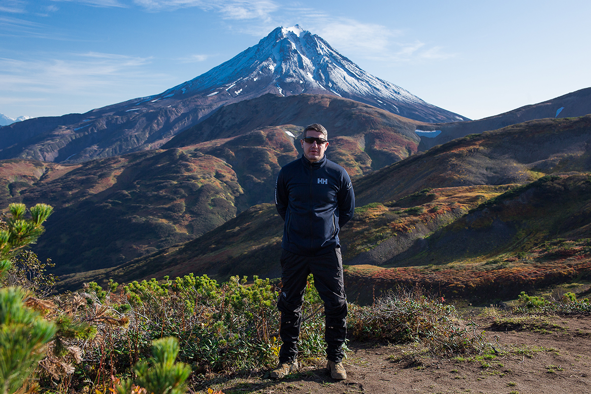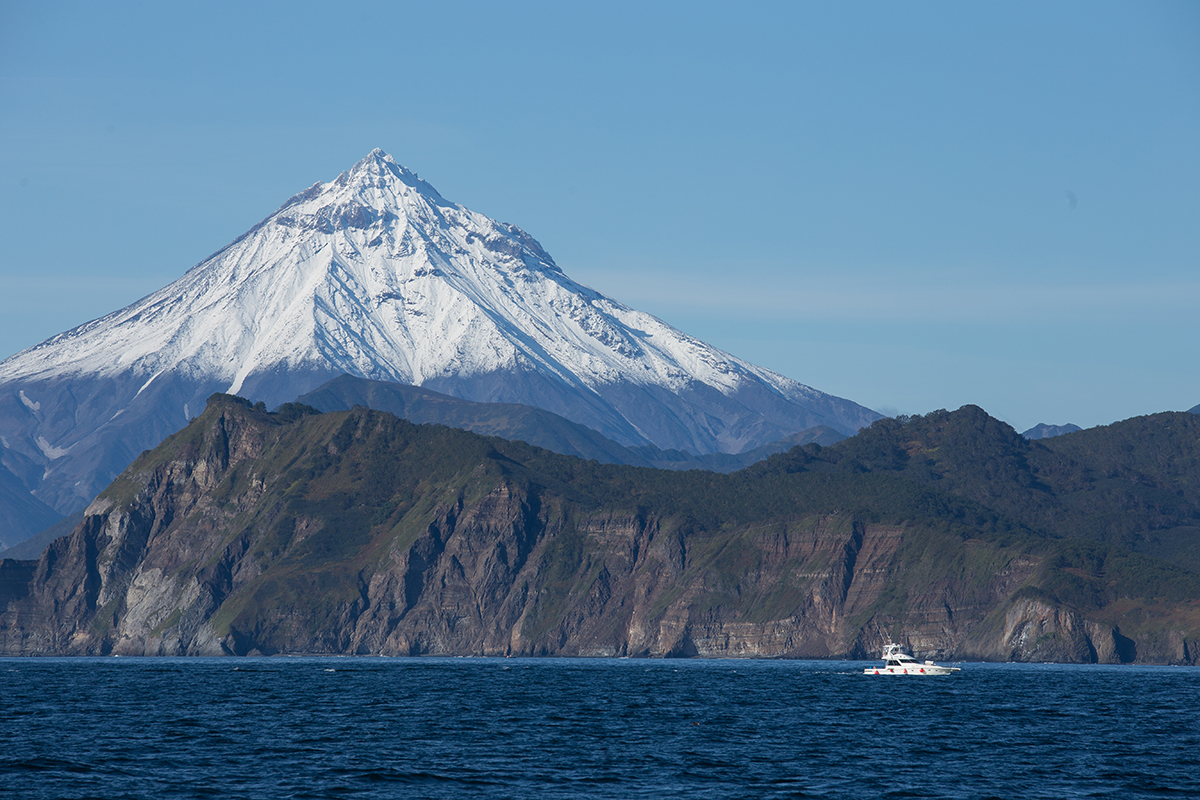 Against the backdrop of golden tundra and crimson forests, the black slopes of volcanoes and their snow-capped peaks look especially contrasting and picturesque.