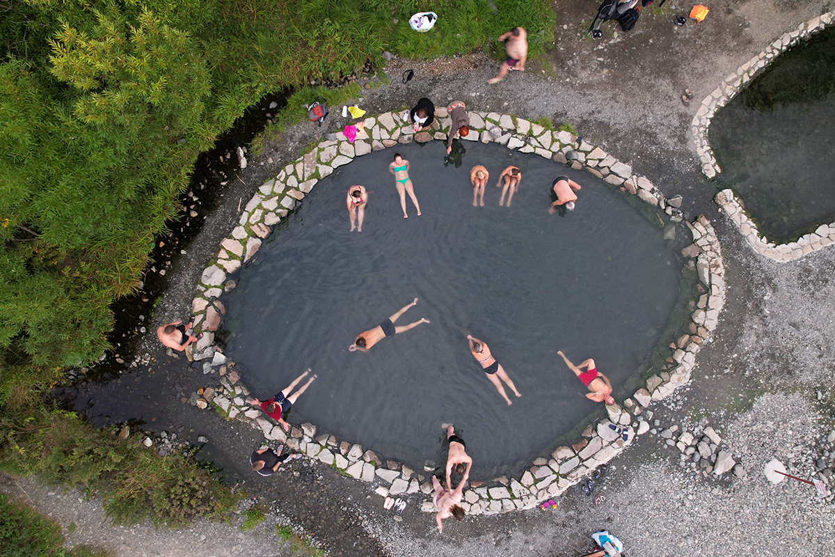 Bathing in hot thermal pools