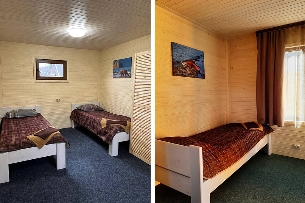 Fishing cabins are located on the bank of the river Bystraya. On the territory there are arbours, Russian sauna on wood, barbecue area. Each house is divided into 2 rooms with amenities (shower and toilet). Houses are designed for a company of 4-6 people, respectively each room for 2-3 people. The base and most of the fishing places are located in the area of mobile operators' network.