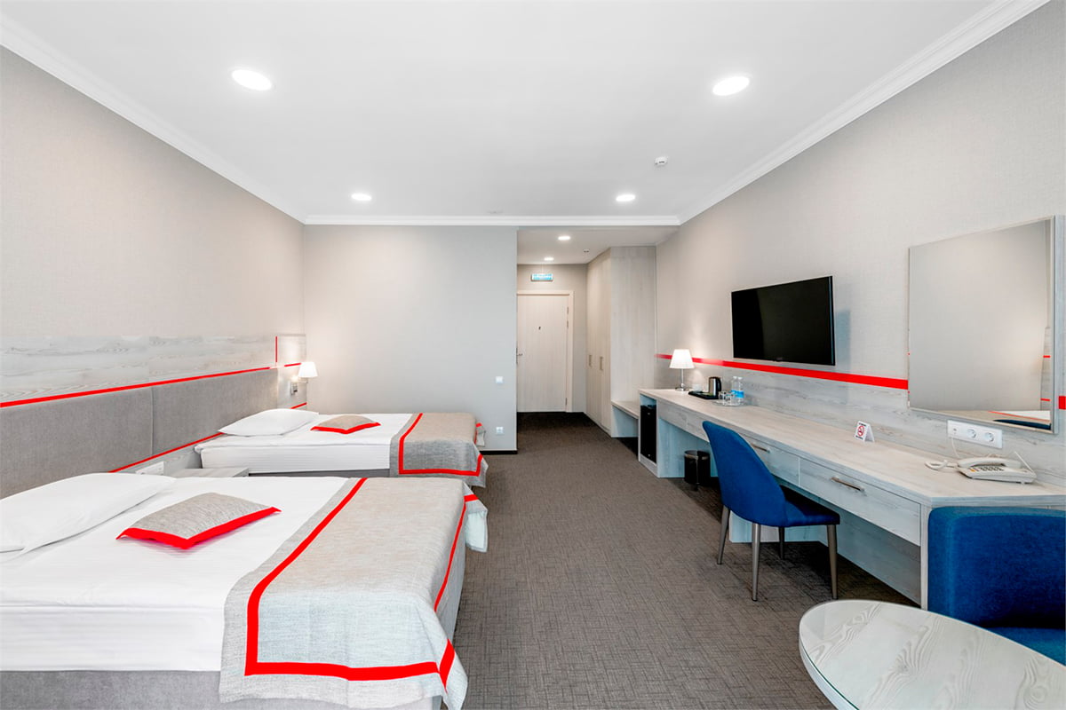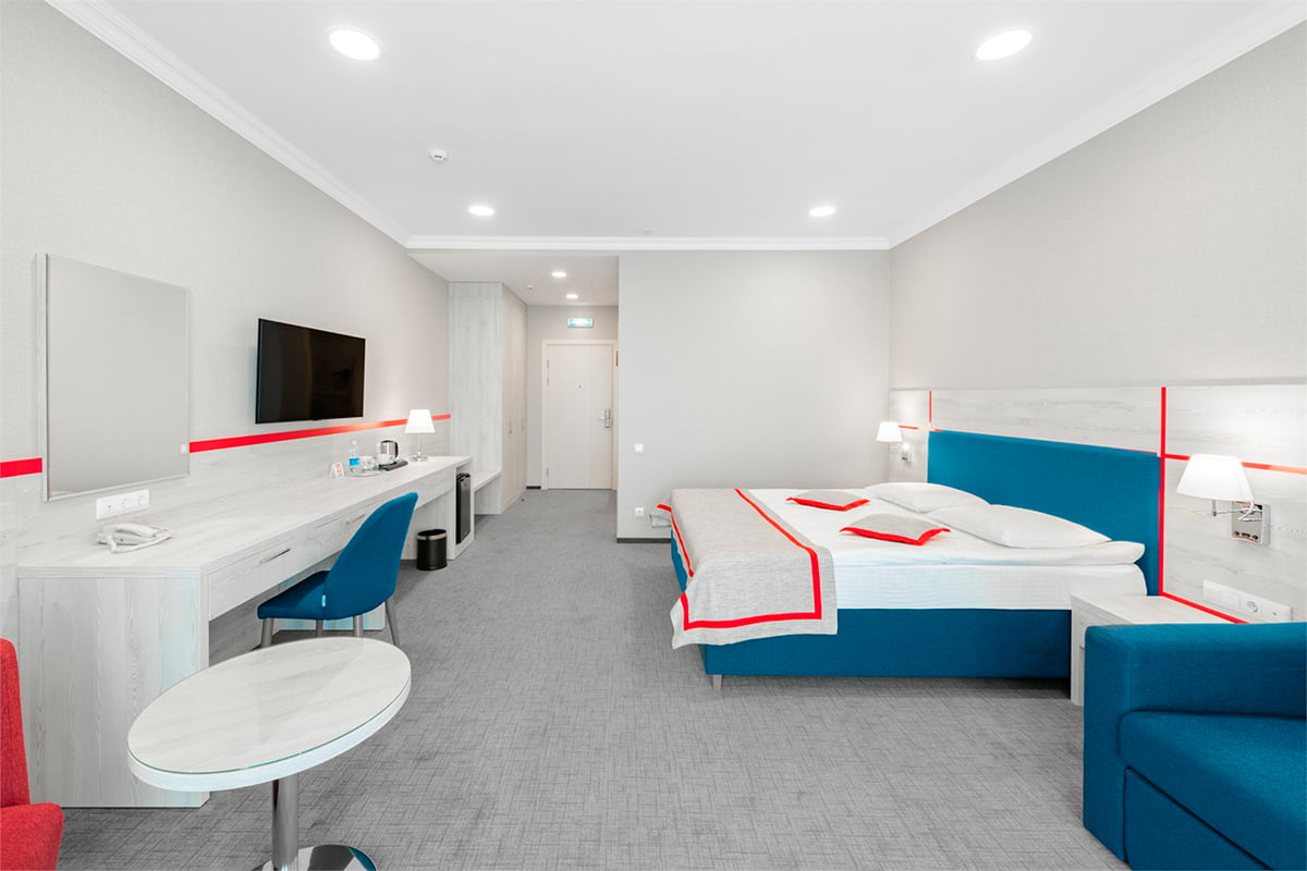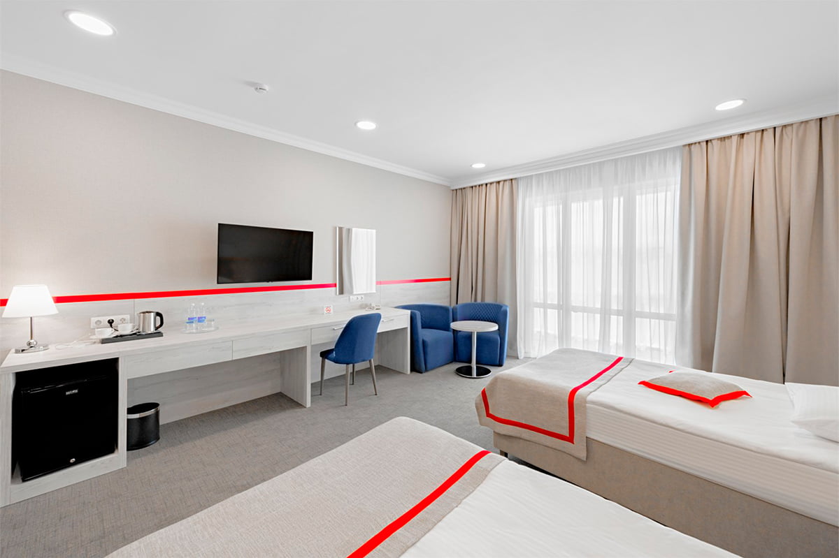 “Russky Dvor” is a new, cozy hotel in one of the most convenient districts of Petropavlovsk‑Kamchatsky. The windows offer views of the volcanoes and Avacha Bay: in the morning you can step out onto the balcony with a cup of coffee and enjoy a panoramic view of the city.
