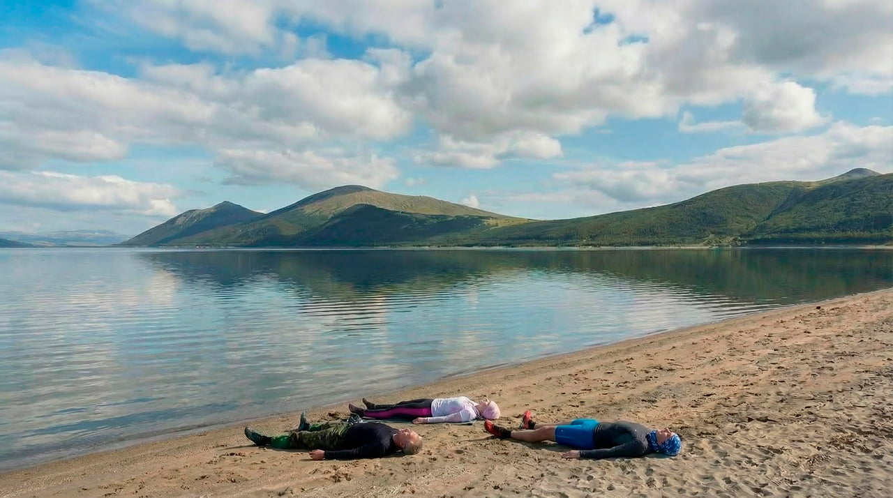 In the morning — a calm practice: a few simple sequences, gentle stretching for the back and legs, and some breathing exercises to wake up and “switch on” the body after sleep. Breakfast doesn’t take long: it’s a full day ahead, and the group departs towards Tolmachevo Lake.